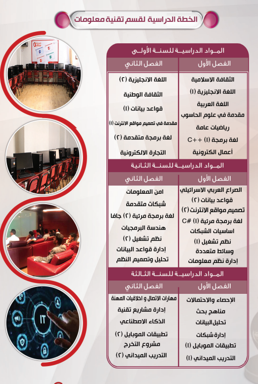 3-إعداد وتخريج طلبة ذوي قدرة في استخدام أحدث أدوات تكنولوجيا المعلومات بكفاءة عالية ومهنية متميزة بقدر عال من الإبداع والتعاون والأخلاق.