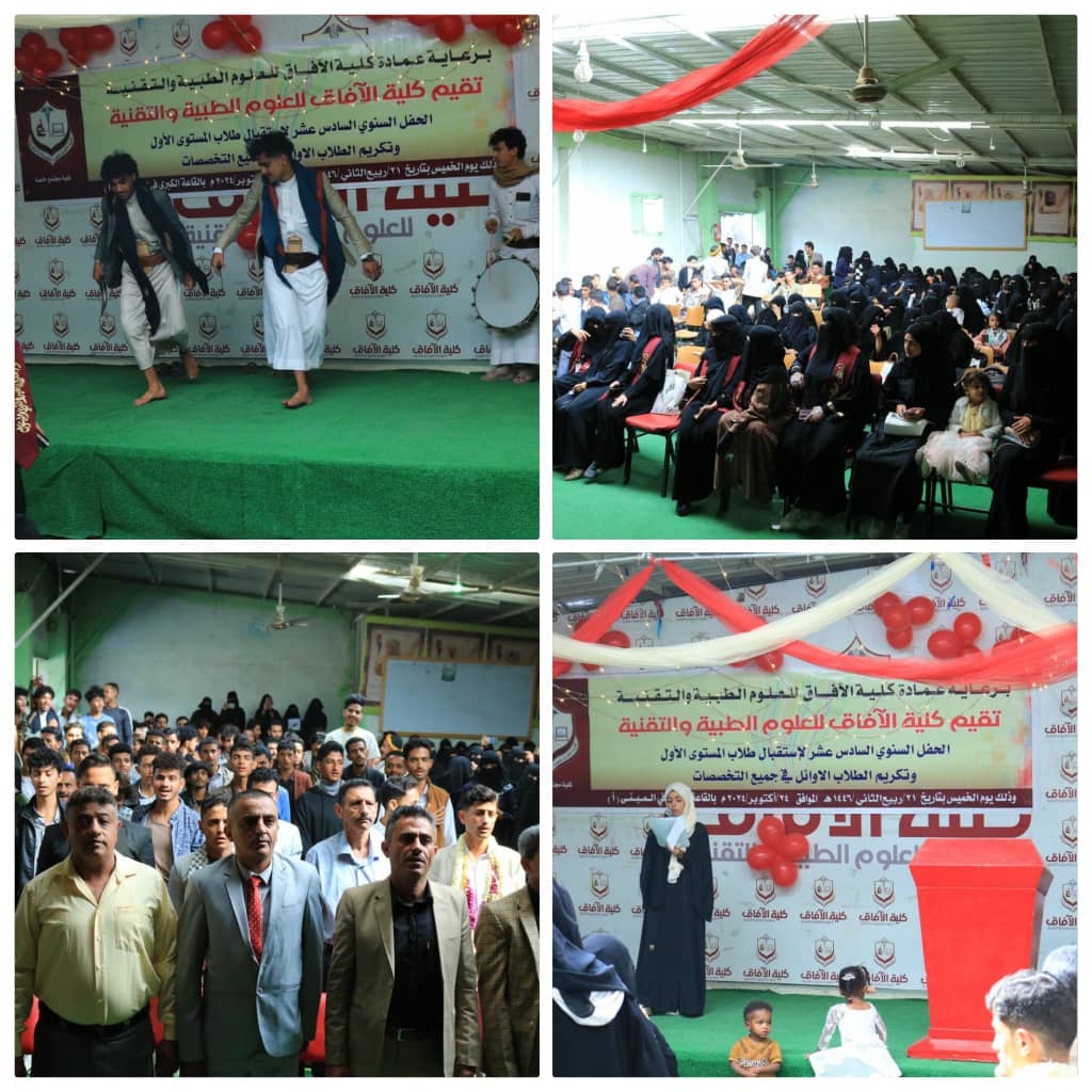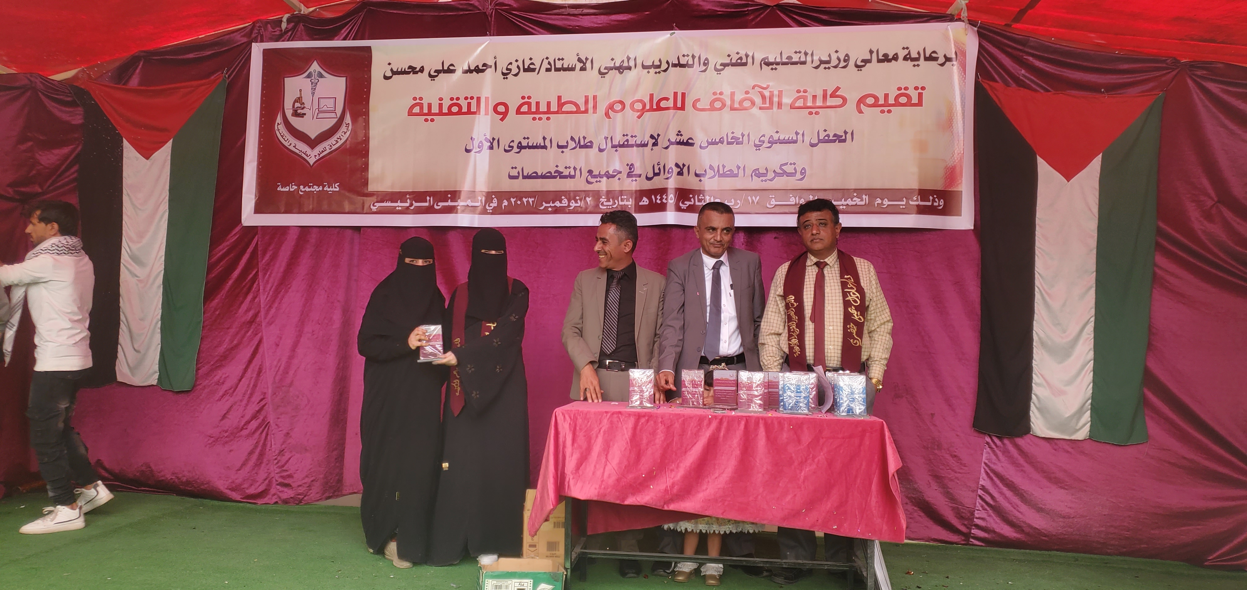 الحفل السنوي الخامس عشر لاستقبال الطلاب المستجدين وتكريم أوائل المستوى الثاني والثالث ومندوبي الدفع في الأقسام الطبية والتقنية وا...